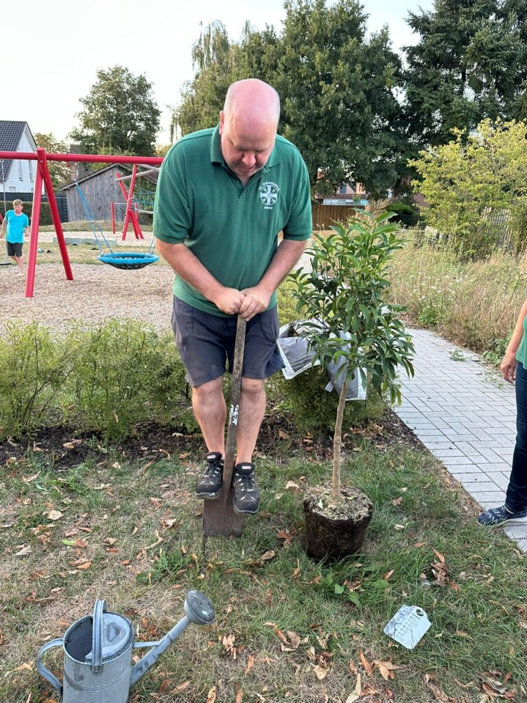 gepflanzt. Anschließend wurde der Baum natürlich reichlich „gegossen“. 🙂