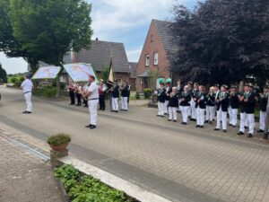 Bevor es zur Messe ins Bürgerhaus ging, wurde der Königin zur Ehre noch einmal die Fahne durch unsere